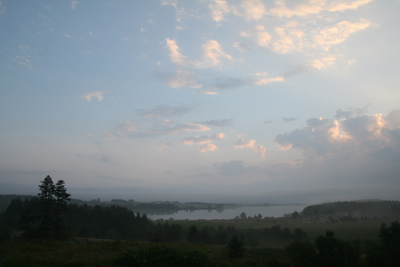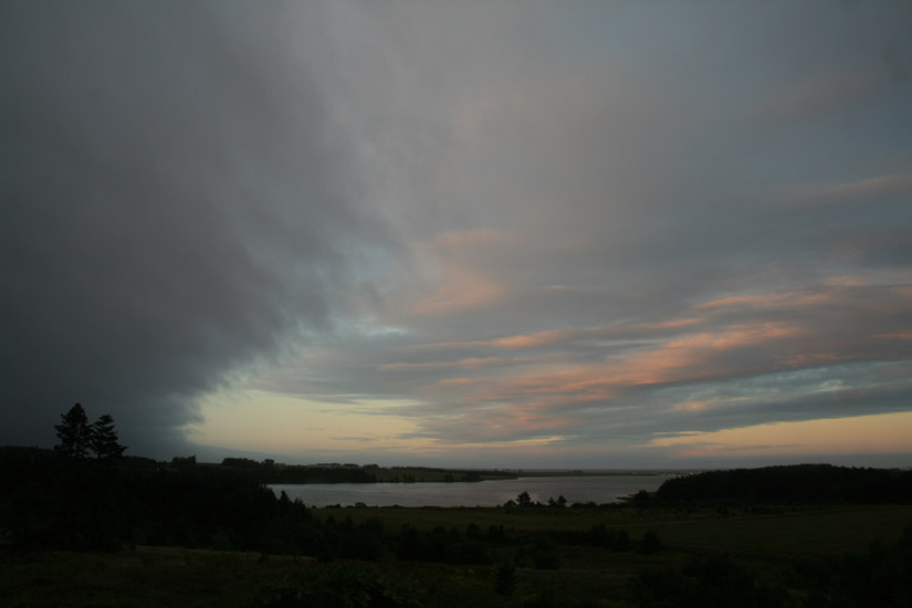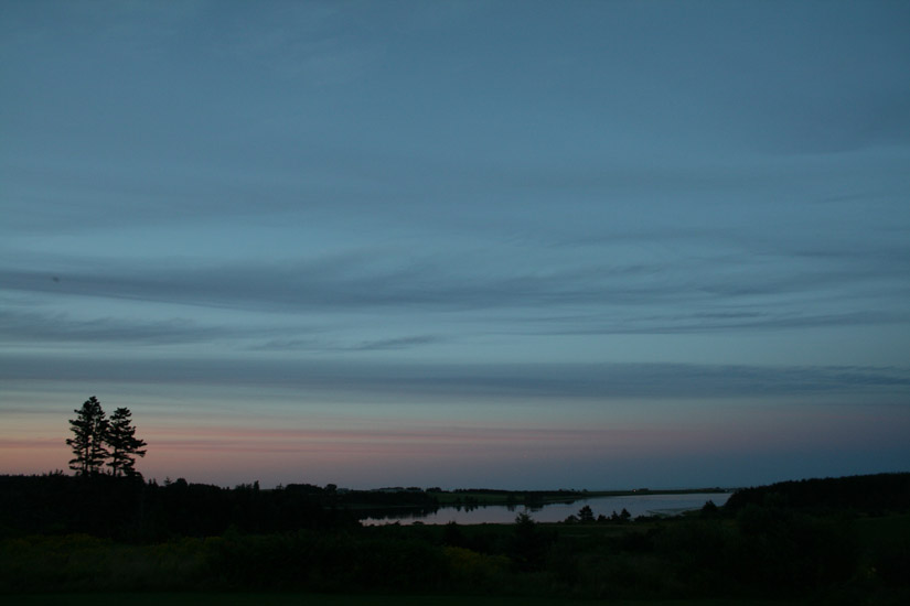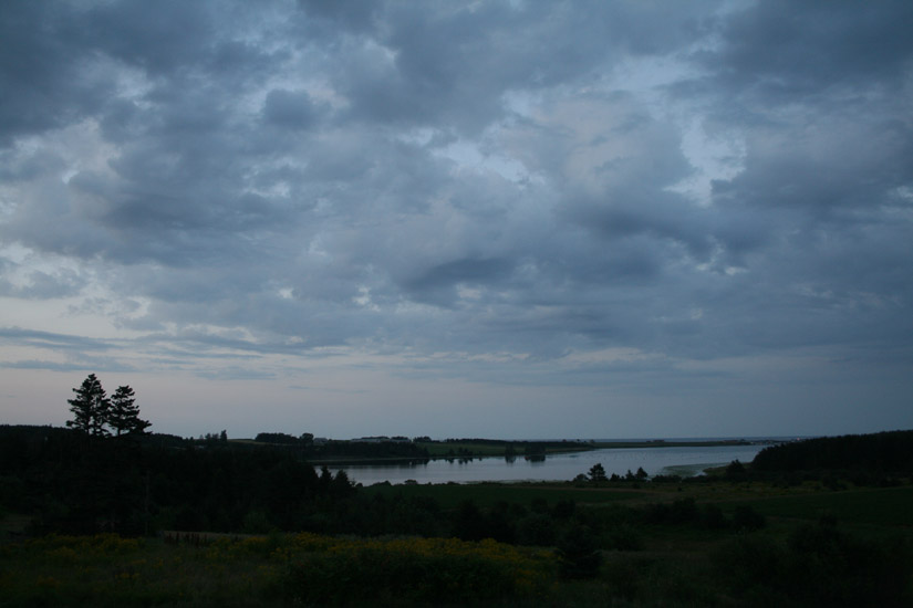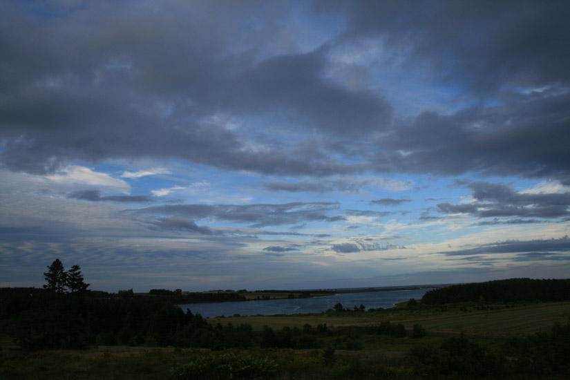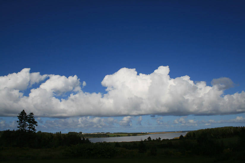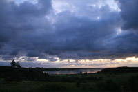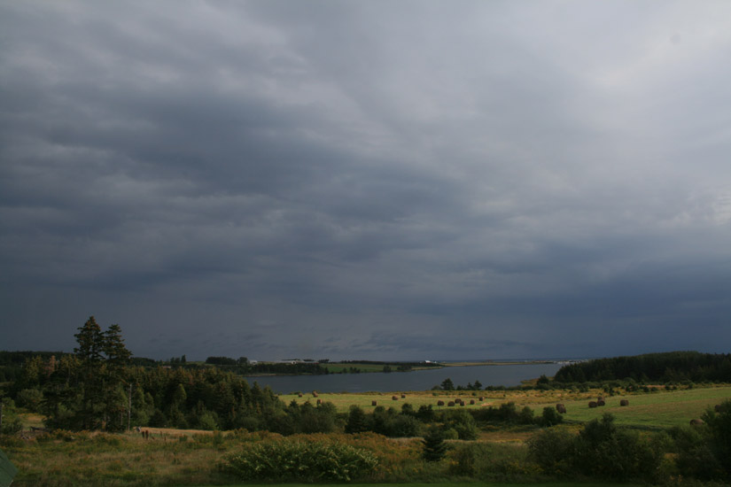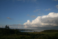 Cumulonimbus depicts the remarkable shifting storms and clouds over North Lake, Prince Edward Island. I eventually realized that I was shooting the exact same shot over and over. It grew into a body of work that has now included 7 years. This body of work includes the photos from the last four years. I shot them all from the upper window of the house where we stay for the month of August into September every year.. They reveal the remarkable shifting weather conditions. Sometimes I shoot the scene non-stop all day long. I run up stairs and take the photo. Around dusk I usually shoot the scene every few minutes for about an hour. I'm amazed by how only a few minutes can completly change the sky. My interest in this process is certainly related to Monet's Rouen Cathedral and Haystacks series. It is fascinating the way the sky is never the same. I find this view inspiring on an almost archetypal level.