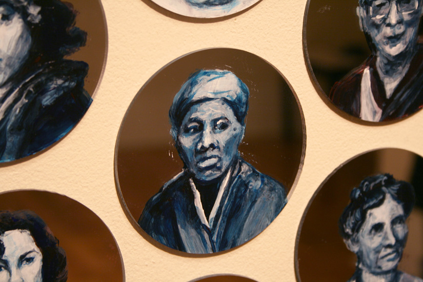 Detail: Harriet Tubman, Jewel Net of Indra installation, 1000 acrylic mirrors with 325 acrylic painted portraits, Aug. 2011 - present, photo: Gareth Bate. Return to Installation | Artist Statement and List of Names | Press |