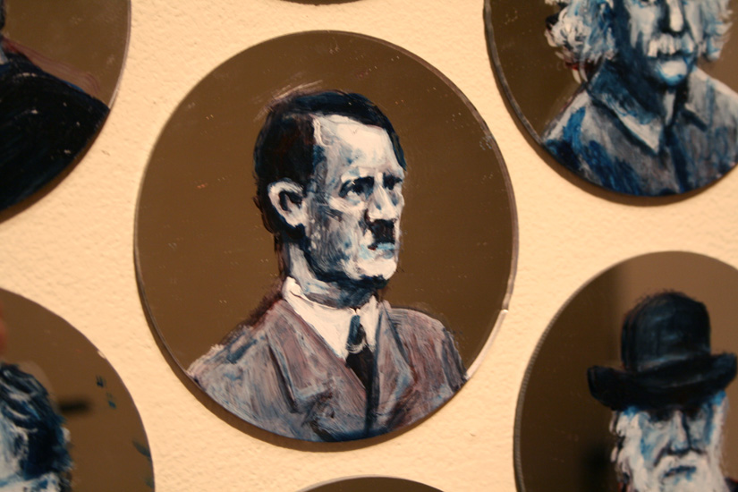 Detail: Adolf Hitler, Jewel Net of Indra installation, 1000 acrylic mirrors with 325 acrylic painted portraits, Aug. 2011 - present, photo: Gareth Bate. Return to Installation | Artist Statement and List of Names | Press |